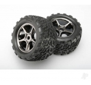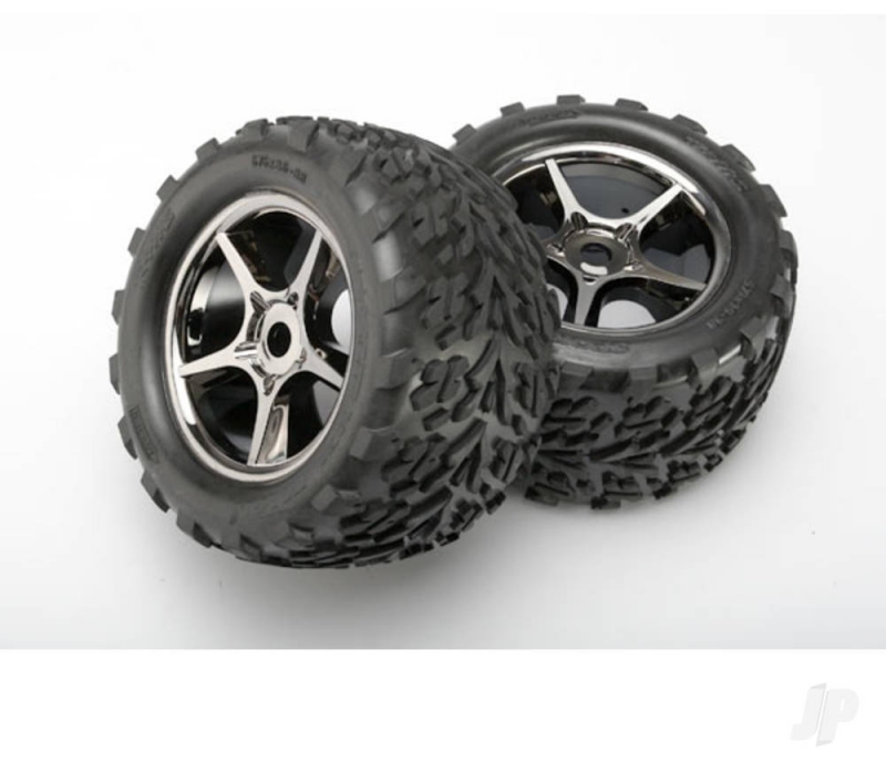 Traxxas Wheels & Tyres, assembled, glued (Gemini black chrome wheels, Talon Tyres, foam inserts) (2) (use with 17mm splined wheel hubs & nuts, part #5353X) (TSM rated) TRX5374X
