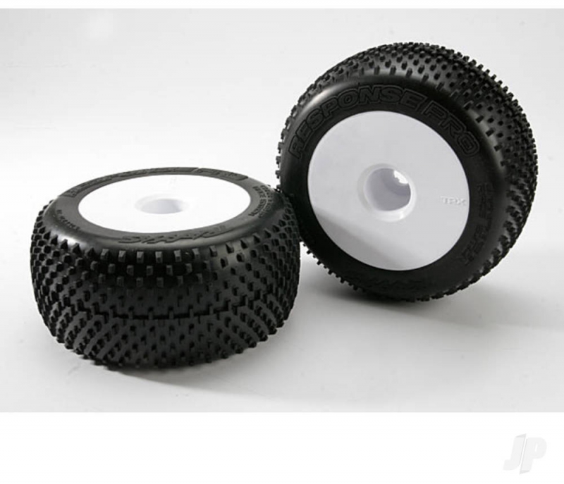 The Response Pro Tyres are the ultimate in off-road racing performance. A taller profile increases side bite and offers better bump handling, while the new tread design and ultra-soft compound stick to the track surface. The outside row of spikes are contoured to provide just the right amount of side bite for smooth, predictable turn-in. The Response Pro racing Tyres come equipped with race-tuned foam inserts. 3.8in dish wheels are the perfect match for the Response Pro racing Tyres. The dish wheels include uniquely moulded hexes that lock into innovative splined 17mm hexes for increased torque handling and rock-solid alignment.