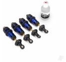 GTR shocks in brilliant blue- anodised colour! Whether you're looking for the ultimate in damping performance and consistent lap-after-lap control, or you want to customize the look of your truck, the new blue-anodised GTR shocks are the perfect addition to your model. The GTR design features a machined, threaded aluminium body with an oversized spring collar for easy and precise preload adjustments. The spring perches are vented to help prevent dirt from packing around the X-ring seals, and hard-chrome shafts resist stiction for smooth action and consistent performance. Inside the shock, volume-compensating bladders are used to ensure perfect damping throughout the travel range. Blue-anodised GTR shocks are sold fully assembled in sets of four complete with silicone fluid. The anodised aluminium bodies are also available separately and are a direct fit for all GTR shocks.