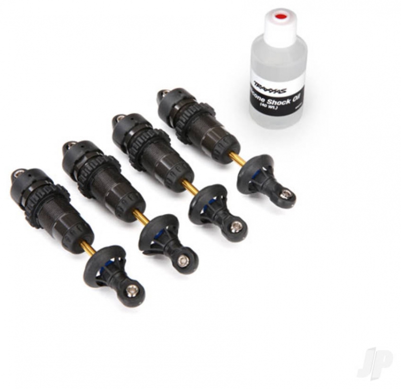 Upgrade your Traxxas model for smoother, longer-lasting performance with this fully assembled shock set. The hard-anodised, PTFE-coated aluminium bodies provide the smoothest finish possible that's extra tough for long wear. Titanium nitride (TiN) coating on the shafts provides an incredibly smooth and durable finish. These shocks feature the same threaded shock bodies and spring pre-load adjusters, volume compensating rubber diaphragms, and low-friction X-ring seals as standard GTR shocks. The kit includes four fully assembled shocks without springs.