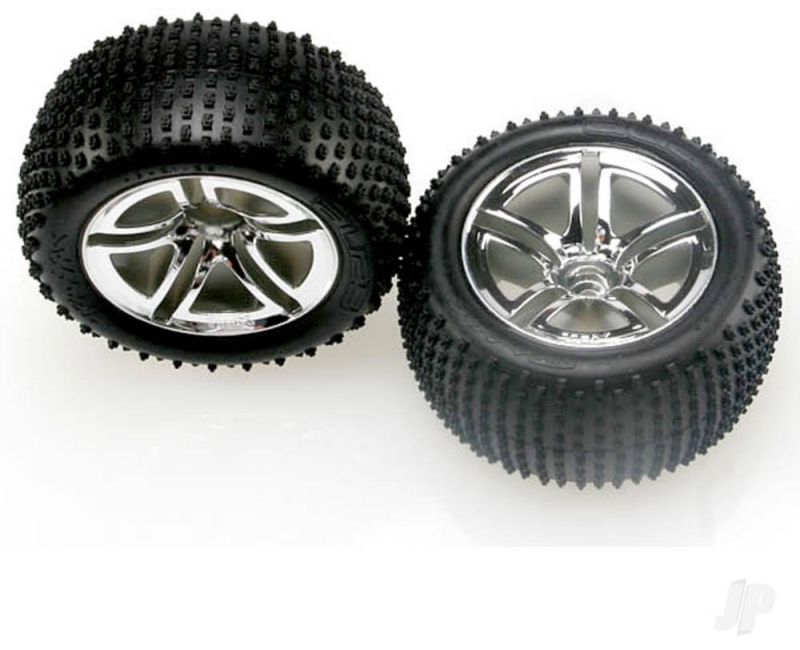 Twin-Spoke wheels redefine looks and convention by combining structural strength and futuristic stylings. The state-of-the-art design features a brilliant mirror-chrome face and a natural nylon bead for fast, easy tyre gluing. The horizontal bead helps grab the tyre, reducing the stress placed on the glue joint by tyre expansion. Alias Tyres are mounted and pre-glued on the chrome wheels for no-hassle, out-of-the-box bolt-on traction. moulded-foam inserts coupled with the directional tread design provide a balanced feel for the ultimate high-speed on-road experience. Alias Tyres and Twin-Spoke wheels also sold separately.