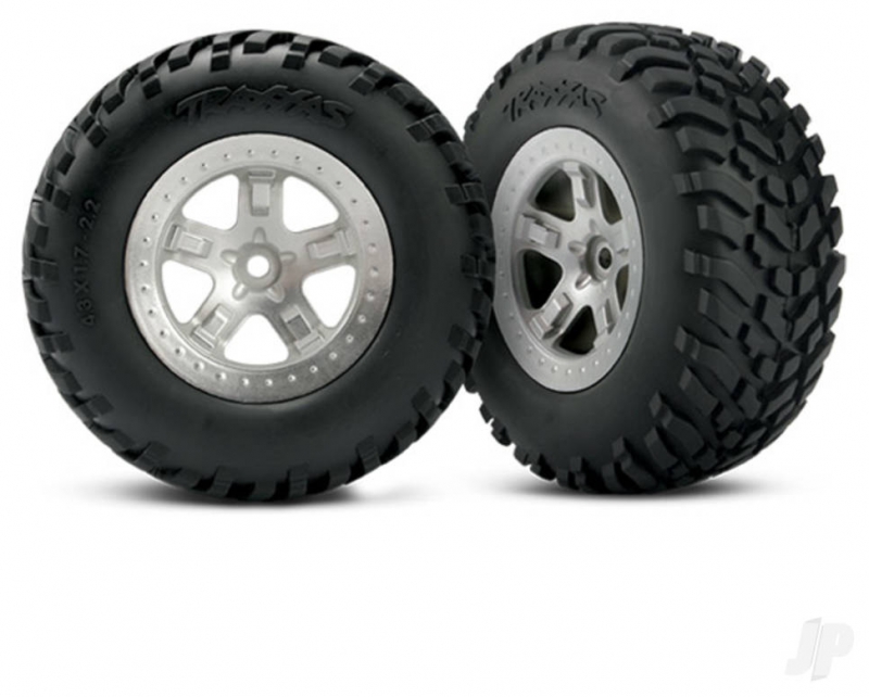 Red & Black Beadlock Satin Chrome Wheels For Slash & Slayer: Add instant inbeadlockin style to your Slash and Slayer with Traxxas' latest option wheels. The beadlock trim is moulded in colour for good looks that last, while the satin-chrome centre section provides the perfect contrast. To preserve the authentic stance and handling of Traxxas' popular short-course trucks, the wheels are offered in Slash- and Slayer-specific versions.