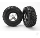 Red & Black Beadlock Satin Chrome Wheels For Slash & Slayer: Add instant inbeadlockin style to your Slash and Slayer with Traxxas' latest option wheels. The beadlock trim is moulded in colour for good looks that last, while the satin-chrome centre section provides the perfect contrast. To preserve the authentic stance and handling of Traxxas' popular short-course trucks, the wheels are offered in Slash- and Slayer-specific versions.