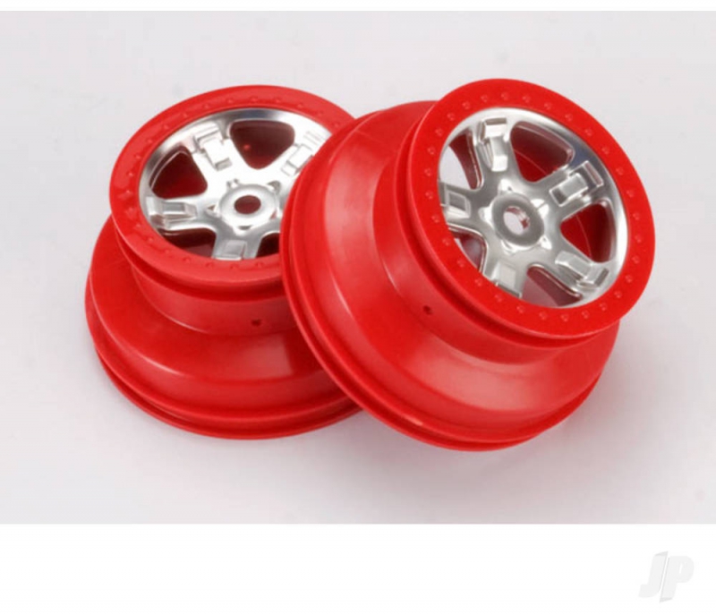 Add instant beadlockin style to your Slash and Slayer with Traxxas' option wheels. The red beadlock trim is moulded in colour for good looks that last, while the satin-chrome centre section provides the perfect contrast. To preserve the authentic stance and handling of Traxxas' popular short-course trucks, the wheels are offered in Slash- and Slayer-specific versions.