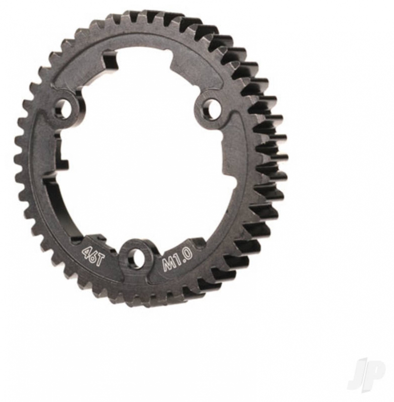 46-tooth spur gear (1.0 metric pitch) is machined from hardened steel with extra-wide steel teeth for ultimate power handling and durability. Traxxas spur gears let you fine-tune the performance of your Traxxas model. Changing gear ratios can help balance acceleration and top speed for different running conditions. Please consult your owners manual for more information on recommended gearing options for your specific model.