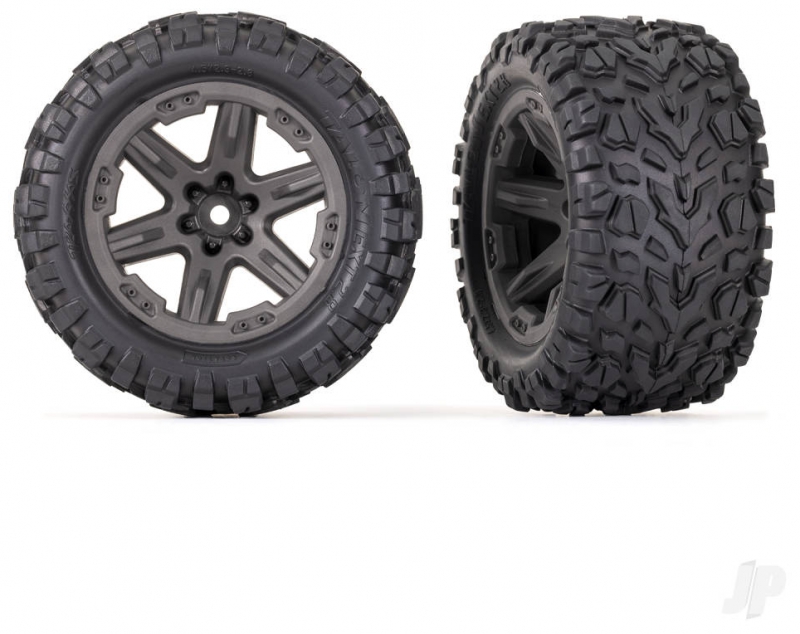 High-performance all-terrain Talon EXT tyres dig into dirt and grass for outstanding traction. The EXTs tyre compound provides extra durability on pavement with a unique design that resists ballooning" at high speeds. Talon EXT tyres come mounted and pre-glued on tough RXT gray wheels for no-hassle, out-of-the-box bolt-on traction. TSM-rated for high-speed applications.