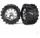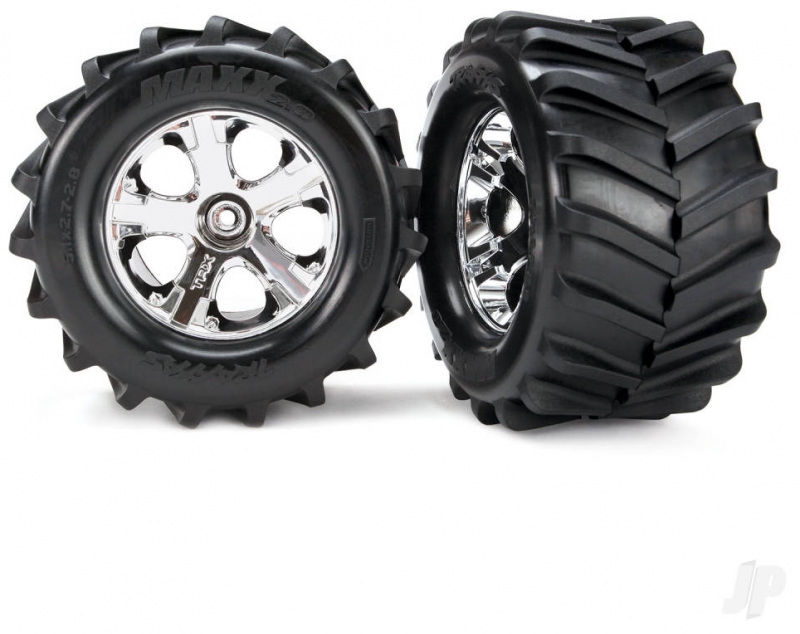 Pre-glued to 2.8" All-Star chrome wheels, the soft-compound Maxx Chevron Tyres maximise performance and all-terrain traction. On dirt the chevron tread pattern claws for traction providing superior forward bite and massive roosts, and on pavement the forgiving side grip allows the tyre to power-slide while maintaining a sure-footed neutral feel.