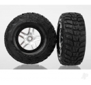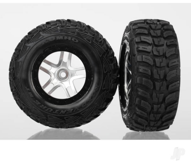 Pair of ultra-soft S1-compound Kumho off-road tyres come pre-glued and mounted with foam inserts to satin-chrome Split-Spoke wheels with black beadlock-style trim.