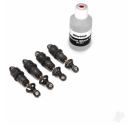 Ultra-long lasting hard-anodised, PTFE-coated aluminium 1:16th GTR shock with Titanium Nitride (TiN) coated shafts offer silky smooth damping. Thanks to the extra tough hard-anodised finish, shock performance stays true and consistent for less maintenance and better handling. Springs sold separately.