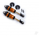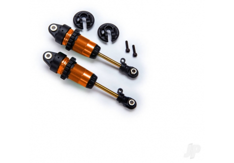 1:10 scale long GTR shocks represent the peak of suspension technology. The brilliantly-anodised aluminium shock bodies are coated with PTFE for the slickest damping action available. Their 13 mm bores hold over 70% more oil than the standard Ultra Shocks and their slick titanium-nitride coated shafts resist scuffing, increase durability, and eliminate "stiction." X-rings keep oil in and dirt out for smooth, consistent damping, and plush suspension action. Spring preload and ride height changes are as simple as turning the threaded spring collars. The lower spring retainers even feature a locking screw to prevent annoying pop-off in the middle of your run. Includes 30-weight pure silicone shock oil. (Sold in pairs, springs sold separately)
