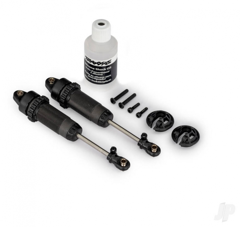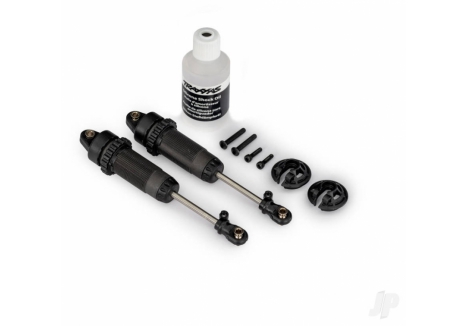 1:10 scale XX-long GTR shocks represent the peak of suspension technology. The brilliantly-anodised aluminium shock bodies are coated with PTFE for the slickest damping action available. Their 13 mm bores hold over 70% more oil than the standard Ultra Shocks and their slick titanium-nitride coated shafts resist scuffing, increase durability, and eliminate "stiction." X-rings keep oil in and dirt out for smooth, consistent damping, and plush suspension action. Spring preload and ride height changes are as simple as turning the threaded spring collars. The lower spring retainers even feature a locking screw to prevent annoying pop-off in the middle of your run. Includes 30-weight pure silicone shock oil. (Sold in pairs, springs sold separately)