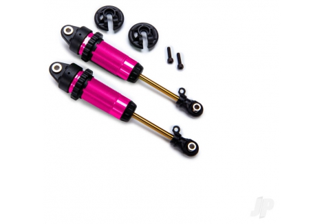 1:10 scale XX-long GTR shocks represent the peak of suspension technology. The brilliantly-anodised aluminium shock bodies are coated with PTFE for the slickest damping action available. Their 13 mm bores hold over 70% more oil than the standard Ultra Shocks and their slick titanium-nitride coated shafts resist scuffing, increase durability, and eliminate "stiction." X-rings keep oil in and dirt out for smooth, consistent damping, and plush suspension action. Spring preload and ride height changes are as simple as turning the threaded spring collars. The lower spring retainers even feature a locking screw to prevent annoying pop-off in the middle of your run. Includes 30-weight pure silicone shock oil. (Sold in pairs, springs sold separately)