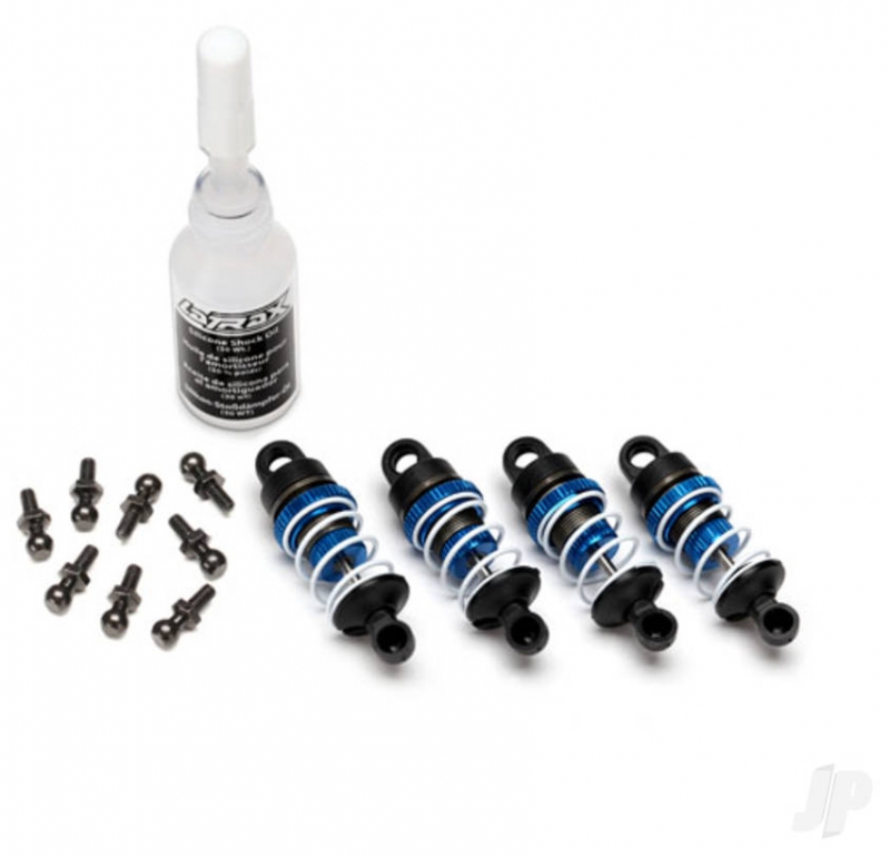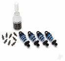 Take your LaTrax Rally to the next level with big suspension technology. Heavy-duty blue aluminium shocks provide long-lasting reliability with smooth suspension travel for increased agility and better damping. The threaded shock bodies make it quick and easy to adjust the ride height. Includes upper and lower shock ball mounts and shock oil.