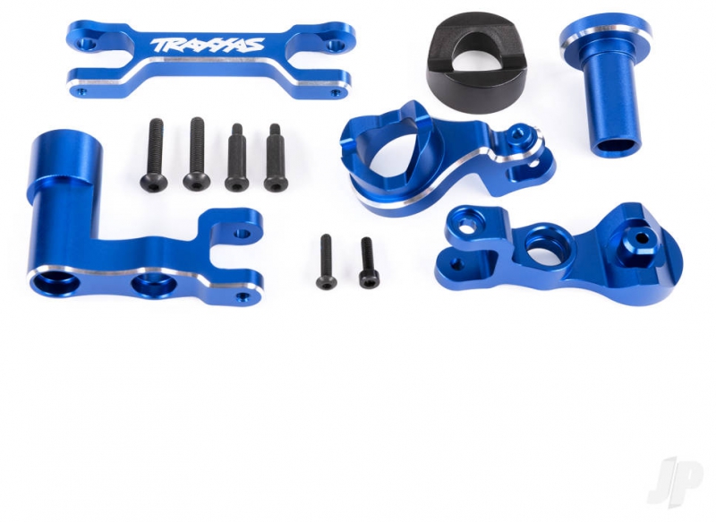 Enhance the steering precision, strength, and looks of your XRT with this aluminium bellcrank steering assembly. Machined from tough 6061-T6 aluminium, these bellcranks add colour and style to your machine. The brilliant hard-anodised finish allows the bellcranks to pivot precisely with sealed ball bearings for silky-smooth turning action. The set also includes aluminium supports, servo saver, double-shear drag link, and mounting hardware. Add the 7747 aluminium servo horn for even greater strength and precision. Genuine Traxxas accessories are made by Traxxas, for Traxxas, to guarantee a perfect factory fit every time.