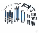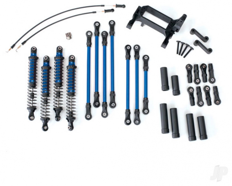 The Traxxas Long Arm Lift Kit raises your TRX-4 to accommodate larger 2.2" wheels and tyres for more terrain-conquering ground clearance. The kit includes longer GTS red aluminium shocks, springs, driveshafts, red power-coated suspension links, and T-Lock cables. A revised mount lowers the servo to maintain proper suspension and steering geometry.
