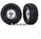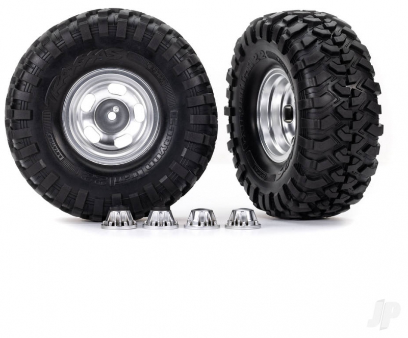 2.2" satin chrome slotted mag wheels come assembled and ready to mount with pre-installed foam inserts and mounted Canyon Trail 2.2" x 5.3" tyres. Canyon Trail tyres feature deep tread blocks for maximum traction on rough terrain with trail-tuned foam inserts for realistic climbing action. Includes centre caps (4). Although designed specifically for the Ford F-150 High Trail Edition, the wheel and tyre set fits all Traxxas TRX-4 models with a Long Arm Lift Kit installed. Includes one left and one right.