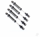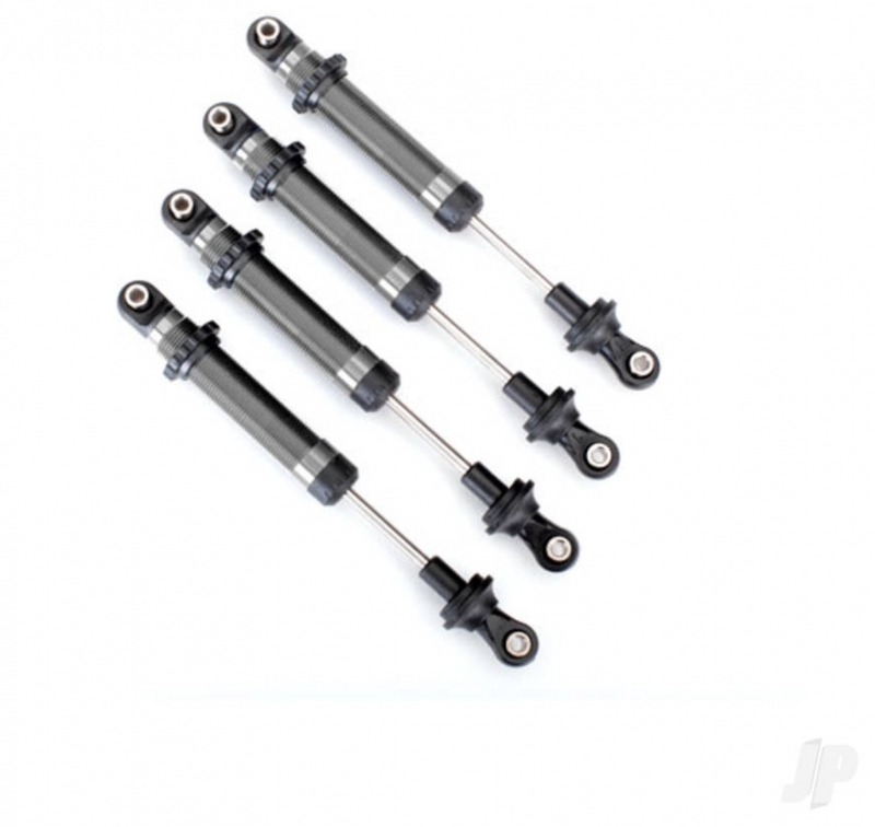 Designed specifically for the Long-Arm Lift Kit, these long oil-filled GTS coilover shocks tame even the roughest trails with their silky-smooth damping performance. The aluminium shock bodies are threaded for easy ride height adjustments using the spring retaining collar. The bright anodised finish adds high-impact style to your TRX-4 and keeps the shocks looking fresh from one adventure to the next.
