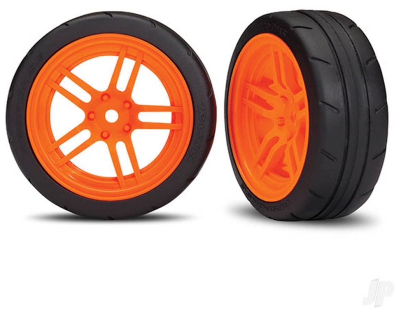 Traxxas Wheels & Tyres, assembled, glued (split-spoke orange wheels, 1.9" Response Tyres) VXL Rated (front) (2) TRX8373A
