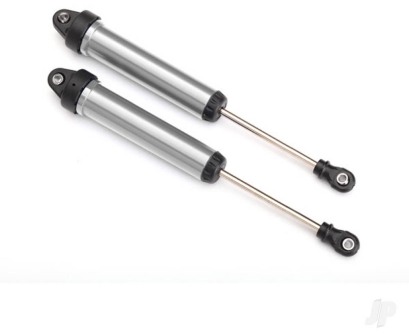 Oil-filled 160 mm long-travel aluminium GTR dampers tame the toughest desert terrain with their silky-smooth damping performance. GTR dampers are sold as fully assembled pairs with silicone oil, but are not intended to use springs.