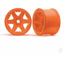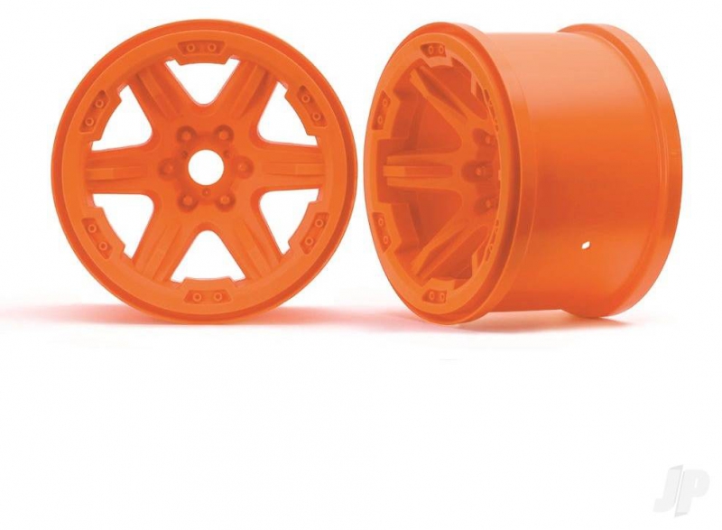 These tough 3.8" orange 6-spoke wheels are built to take a pounding. Sold as a pair. Wheels require 17 mm splined hex.