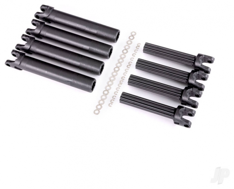 The WideMaxx half shaft set includes four internal-spline shafts and four external-spline shafts to create four telescoping driveshafts (plastic parts only). Fits front or rear, left or right. Must be used with WideMaxx suspension arms.