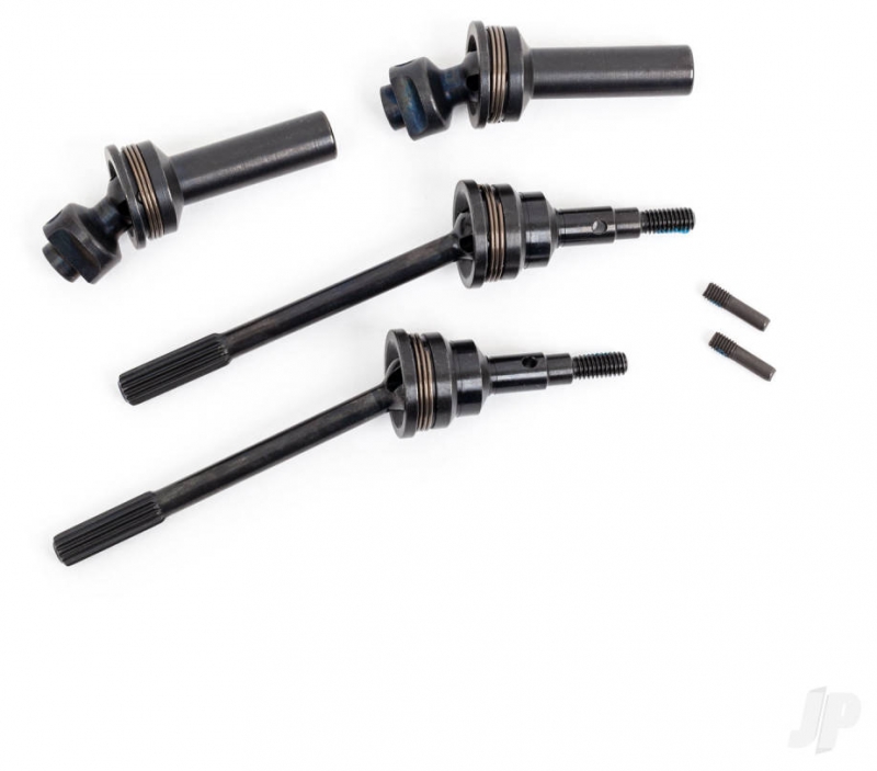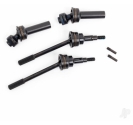 Available now, NEW extreme heavy-duty steel CV (constant velocity) driveshafts for the Traxxas Hoss are engineered to satisfy the performance and durability needs of your most demanding customers. Designed specifically for monster truck applications, these new shafts are built to withstand the brutal, wheel-standing torque of Hoss 540XL motor and the massive grip of the huge Sledgehammer Tyres. Compared to ordinary metal shafts, Traxxas unique, splined telescoping design delivers full-range articulation, so there is never a need to limit suspension travel. Since they are made by Traxxas, customers can count on easy installation and perfect fit in their Traxxas model.