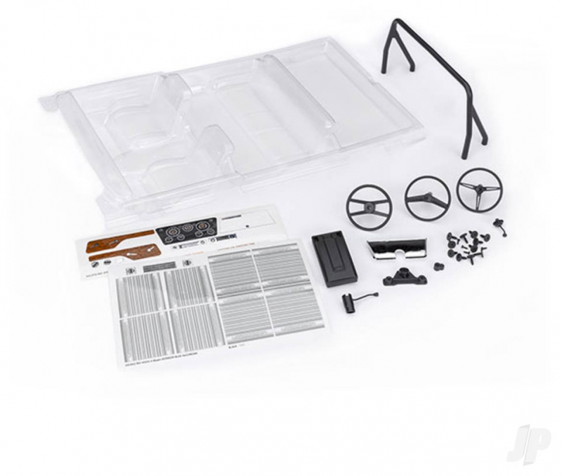 Give your TRX-4 Chevrolet Blazer maximum scale detail with this clear interior kit. Available in blue, black, or clear, the TRX-4 Blazer interior kit mounts to the 1969 and 1972 Blazer clipless bodies (sold separately). Intricate decals and individually moulded parts give the interior unparalleled scale realism with the convenience of clipless mounting. Just release the clipless tabs and the interior comes off with the bodyno hook-and-loop tape or body clips required! Create your own custom interior with Traxxas ProGraphix paint.