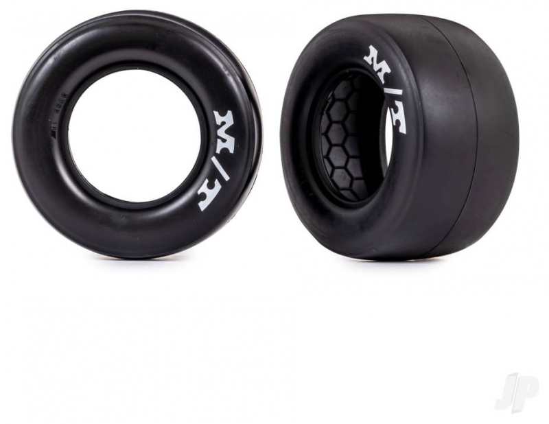 Licensed pair of rear Mickey Thompson ET Drag slick drag racing tyres. The sticky-compound rubber provides superior traction for even more grip off the line. Foam inserts sold separately.
