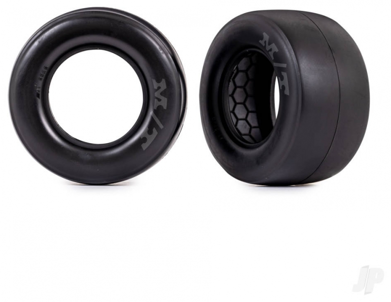 Licensed pair of rear Mickey Thompson ET Drag slick drag racing tyres. The rubber compound is specially designed to provide smoky burnouts when heated for a dramatic effect. Smoke-compound tyres are not recommended for competitive drag racing. Foam inserts sold separately.