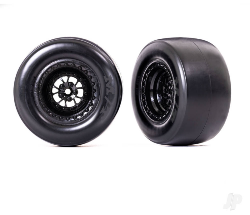 Traxxas Wheels & Tyres, Assembled, Glued (Weld Glossy Black wheels, Mickey Thompson ET Drag Slicks, smoke, foam inserts) (rear) (2 pcs) TRX9477
