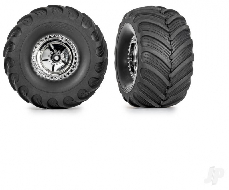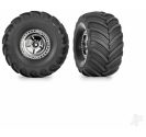 Standard on TRX-4MT, large Terra Groove 3.14x1.65" tyres give your monster truck a towering stance with the authentic "hand carved" looks of real monster truck tyres. Terra Groove tyres provide excellent traction with an aggressive tread pattern that bites into loose surfaces. The sticky rubber compound is also great on carpet, grass, and pavement. tyres come mounted to 1.2" chrome deep dish monster truck wheels. For extra control, try 9879 soft foam inserts.
