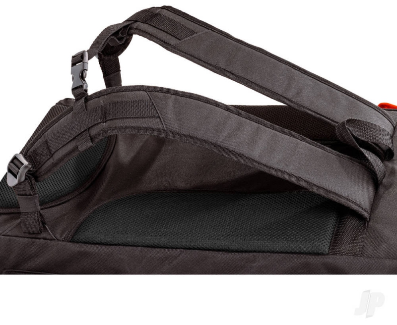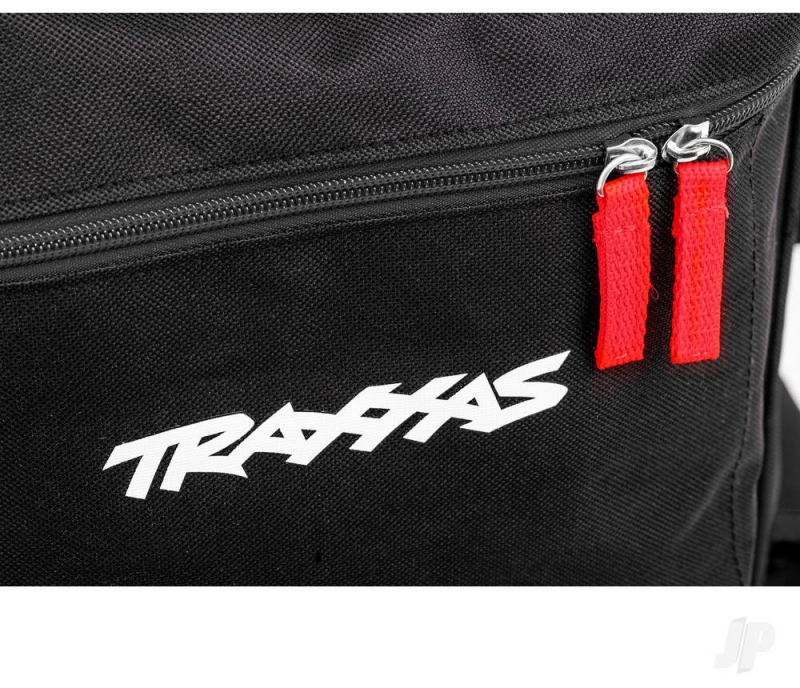 The Traxxas backpack is built to the same standard as the trucks it transports. The high quality Nylon fabric is both strong and lightweight with heavy duty reinforced zippers. The durable weather-resistant material repels water and protects against tears and punctures with robust padding. Heavy duty adjustable shoulder straps and a padded back panel position the weight for maximum comfort on long hauls. A reinforced bottom panel also features tough plastic feet to reduce wear and scuffs for years of service.