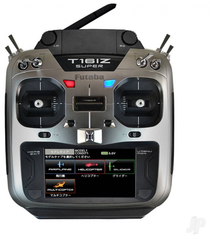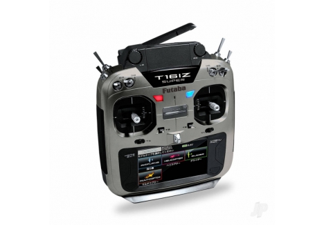 The T16IZ Super is a radio that stashes huge programming power behind its 32MZ styling, silky-smooth gimbals and full colour touchscreen. Supplied with an R7208SB receiver (incorporating dual receiver functionality), there's so much to applaud here, including 30 model memories, full telemetry support, 8 flight conditions, aircraft, helicopter and glider programming, and oodles more. Equipped with Futaba's S-FHSS, T-FHSS and FASSTest transmission protocols the popular 18-channel (16+2) transmitter is everything that intermediate or advanced pilots are ever likely to need. Clock the high-quality gun metal finish and we guarantee you'll fall in love.