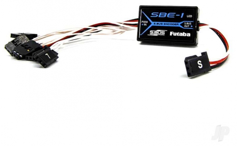 - What does the SBE-1 do? It converts up to 10 PWM input channels into a single S.BUS or S.BUS2 data stream.