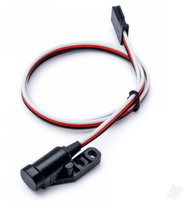 Futaba SBS-01RM Telemetry Magnetic RPM Sensor FUT05102559-1 measures rotational speed from 360 up to 50 000 rpm using a magnetic detection mechanism.