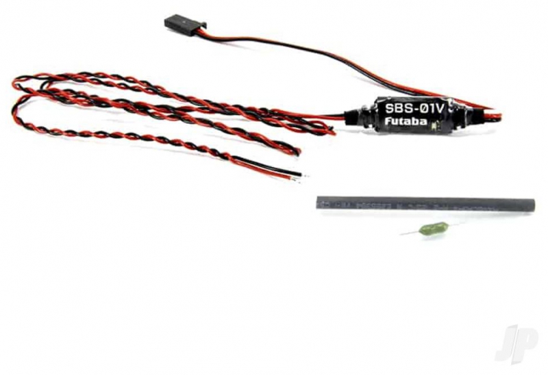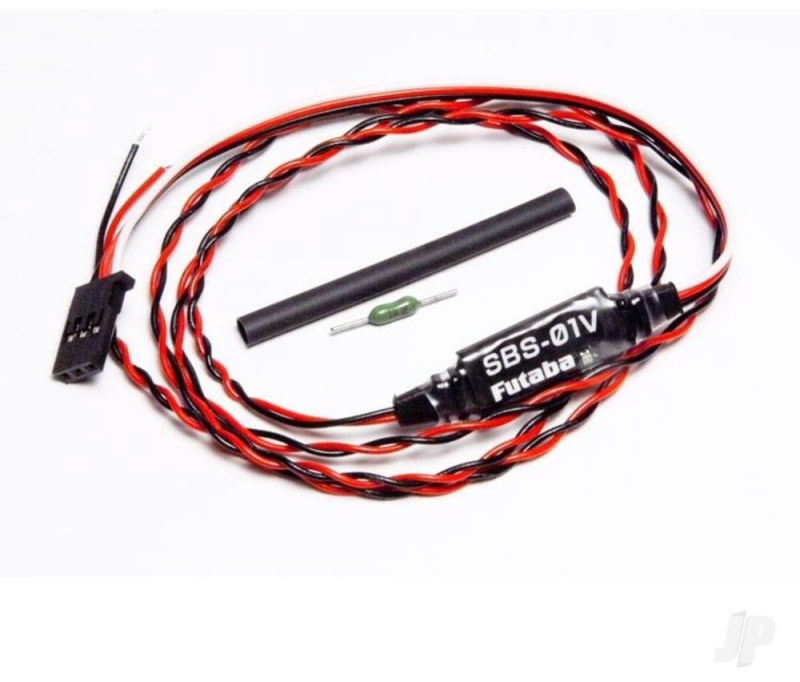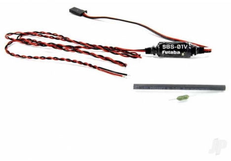 Futaba SBS-01V Telemetry Voltage Sensor (0–100 V) FUT05102582-1 measures both receiver supply and external voltage sources with precision using S.BUS2 telemetry output.