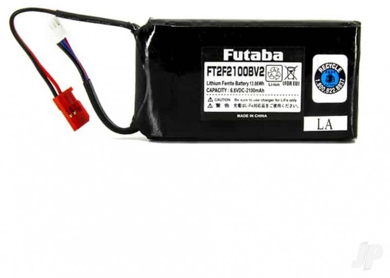 Futaba 6.6 V 2100 mAh LiFe Transmitter Battery FUTUBA0135 provides consistent, long-lasting power with about 500 charge cycle lifespan.
