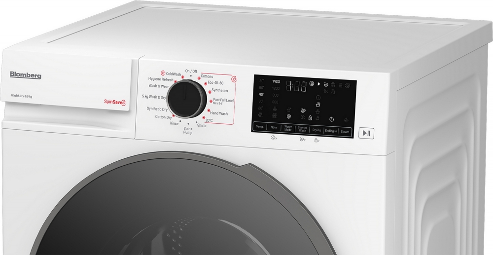 The Fast Full Load programme washes a complete 8kg load in under 30 minutes, making light work of your weekly laundry. On busier days, the Wash & Wear cycle allows for 1kg of clothes to be washed and dried in just 60 minutes—perfect for spontaneous plans or last-minute school uniforms. These fast turnaround programmes make this one of the best Blomberg washer dryer for energy efficiency and small homes.