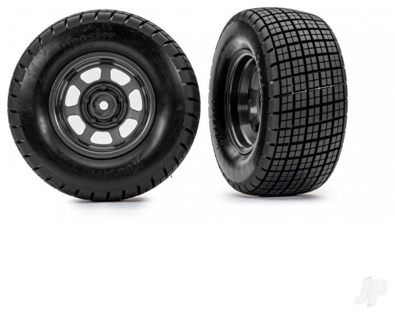 Traxxas Wheels & Tyres, Assembled, Glued (dirt oval, Graphite Grey wheels, Hoosier tyres, foam inserts) (2) (2WD front only) 020334040138