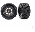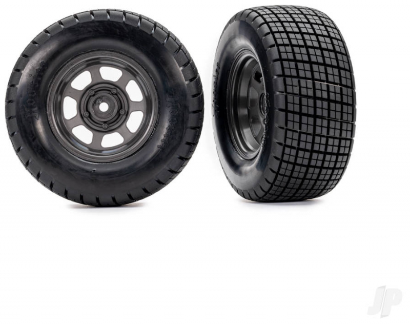 Traxxas Wheels & Tyres, Assembled, Glued (dirt oval, Graphite Grey wheels, Hoosier tyres, foam inserts) (2) (4WD front/rear, 2WD rear only) 020334040169