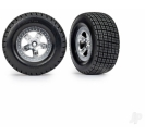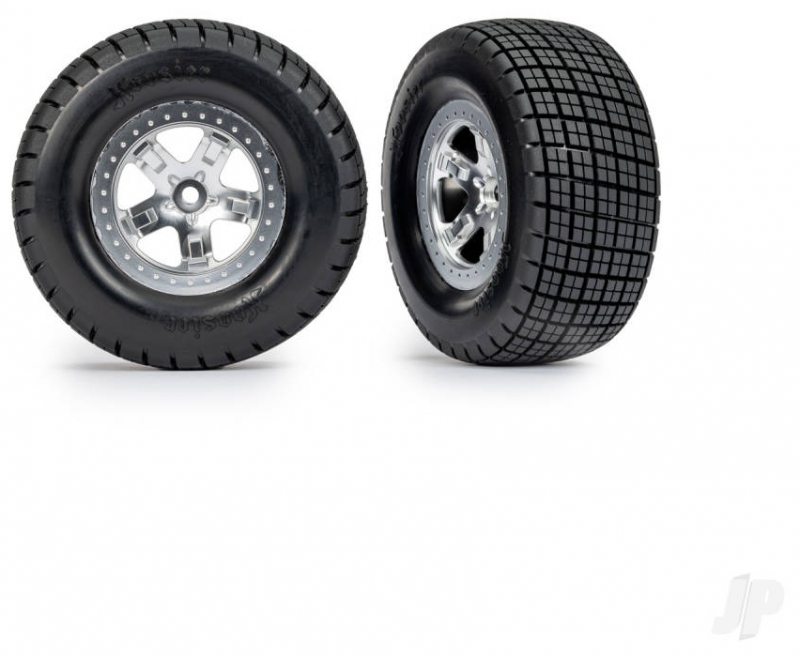 Traxxas Wheels & Tyres, Assembled, Glued (SCT, Satin Chrome wheels, beadlock type (dual profile 2.2in outer 3.0in inner, Hoosier tyres, foam inserts) (2) (4WD front/rear, 2WD rear only) 020334027566