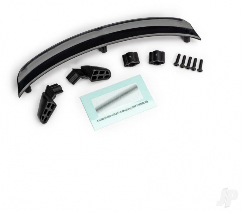Traxxas Mirrors, side, Black (left & right)/ mirror retainers (2)/ spoiler, Black/ 2.5x10 BCS (5) (fits #10511 body) 020334026408
