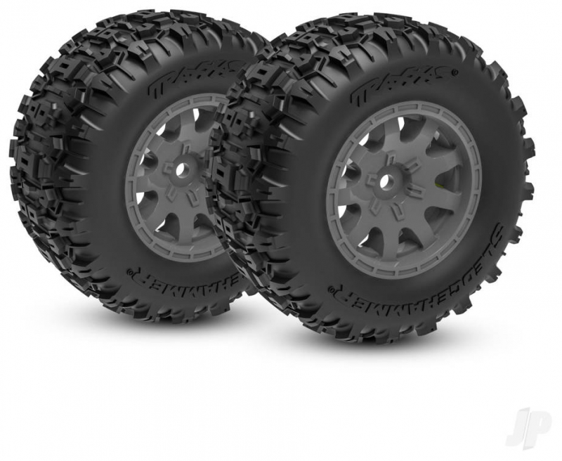 Traxxas Wheels & Tyres, Assembled (Charcoal Grey wheels, dual profile (2.1" outer, 2.6" inner), Sledgehammer tyres, foam inserts)) (front) (2) 020334043511