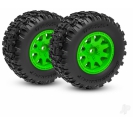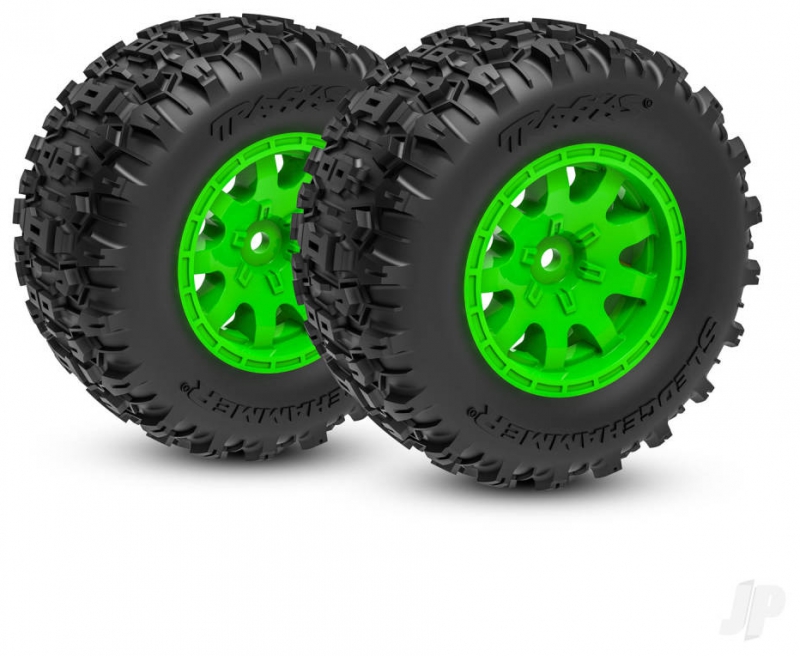 Traxxas Wheels & Tyres, Assembled (Green wheels, dual profile (2.1" outer, 2.6" inner), Sledgehammer tyres, foam inserts)) (front) (2) 020334043535