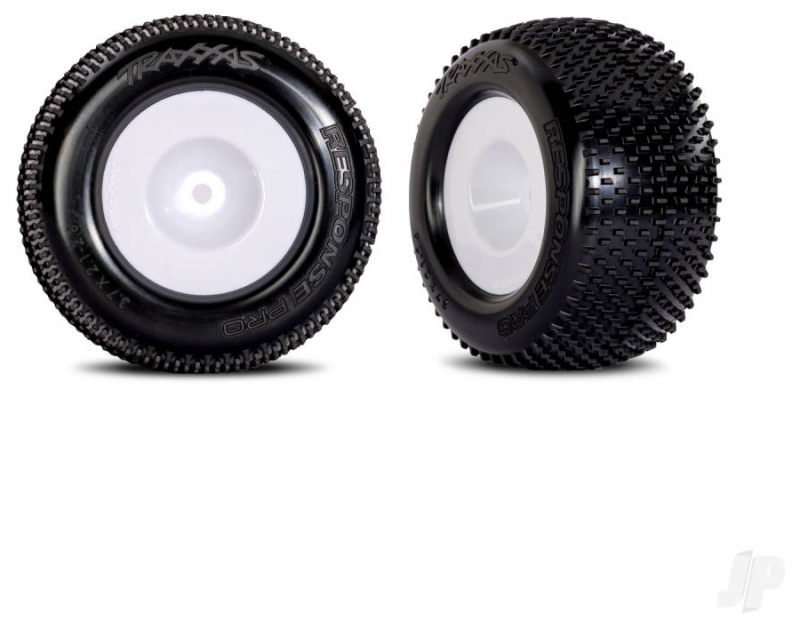 Traxxas Tyres & wheels, assembled (white wheels, dual profile (2.1" outer, 2.6" inner), Response Pro tyres, foam inserts) (2) 020334049582