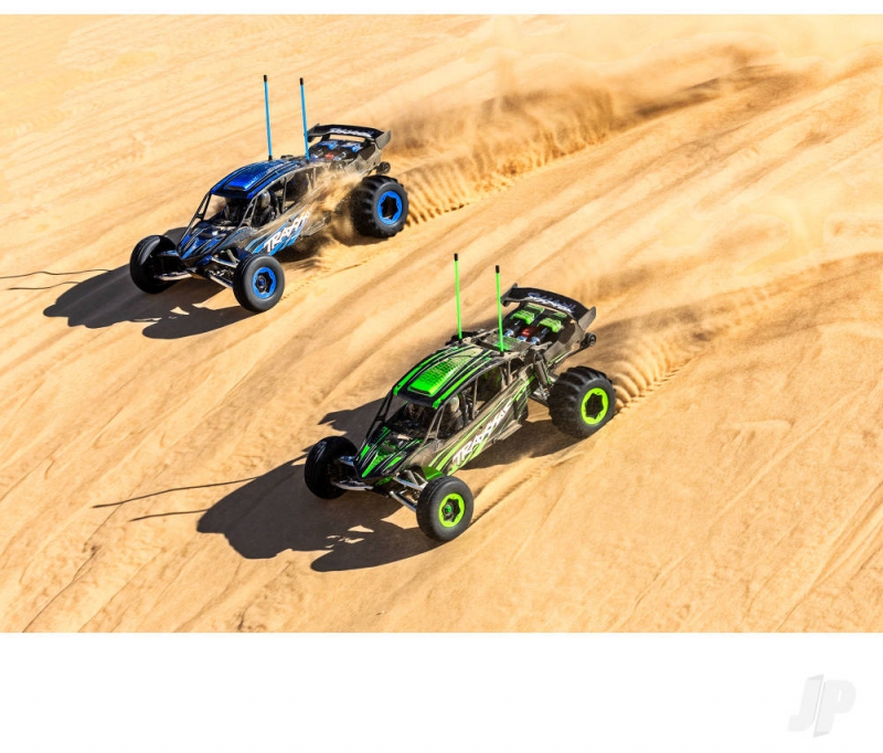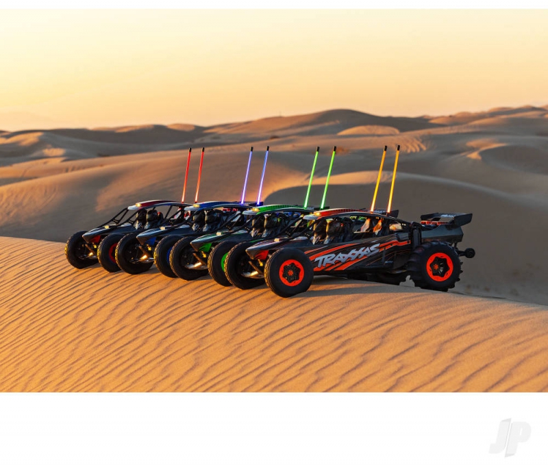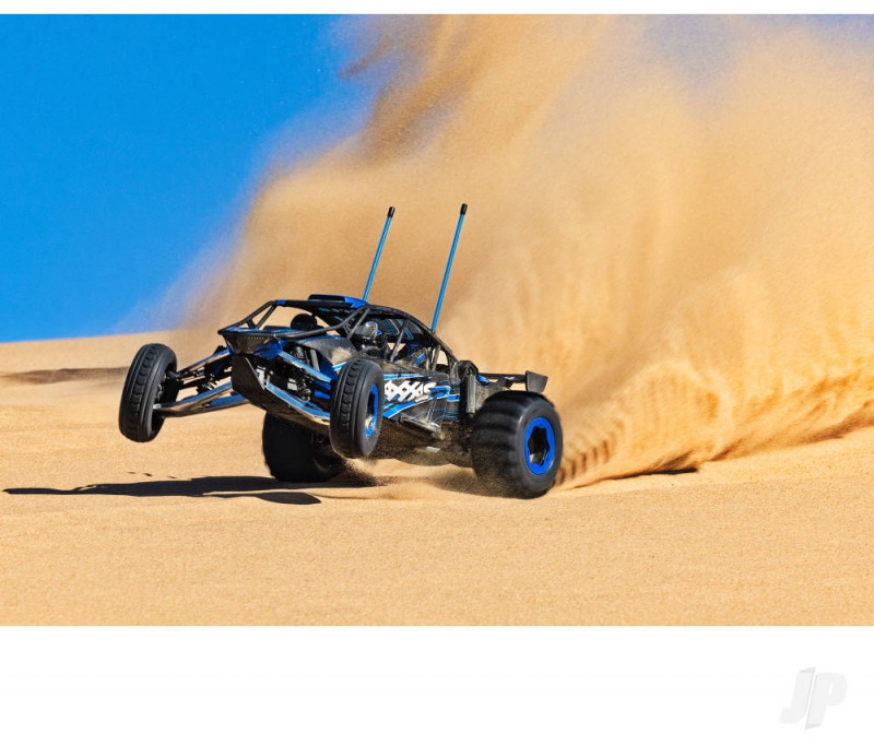 The Traxxas 2WD electric sand car with Velineon 1200XL motor and telemetry is engineered for aggressive off-road action. Its rear-wheel drive layout, paired with belted paddle tyres and a low-CG chassis, delivers explosive acceleration and directional control. TSM actively corrects steering input to maintain stability on sand and loose surfaces, while the dual-fan motor and VXL-8s ESC ensure consistent power delivery. With steel driveline components and oversized shocks, this buggy is built to dominate dunes, flats, and open terrain.