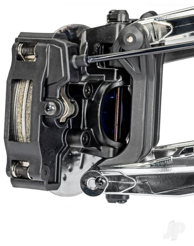 - Functional front disc brakes – steel rotors controlled by digital servo for authentic stopping power