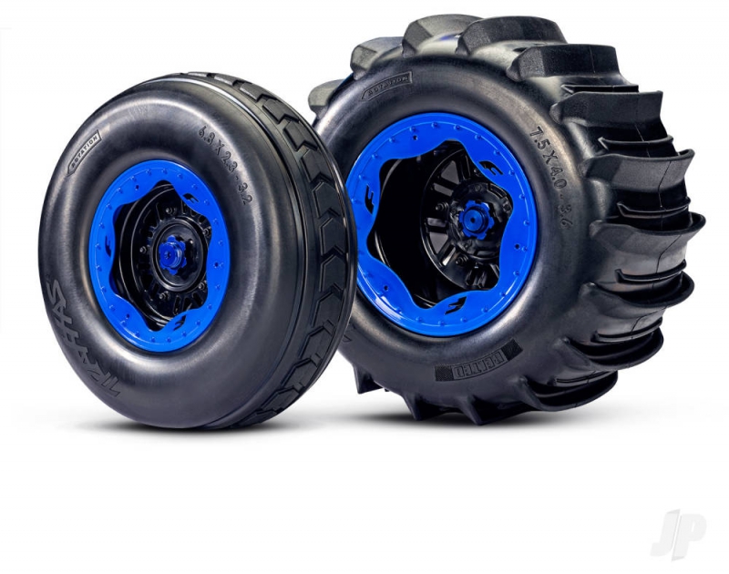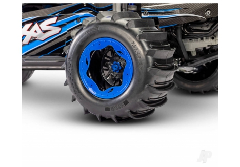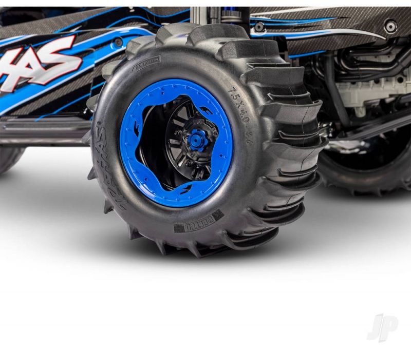 - 7.5" rear paddle tyres and 6.8" front arrow-pattern tyres – mounted on replica Funco beadlock wheels