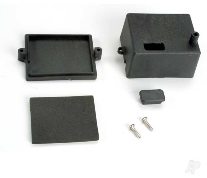 Traxxas Box, receiver / x-tal access rubber plug / adhesive foam Chassis pad 020334492401