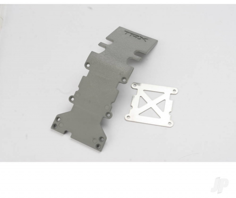Traxxas Skid plate, Rear plastic (Grey) / stainless Steel plate 020334493859